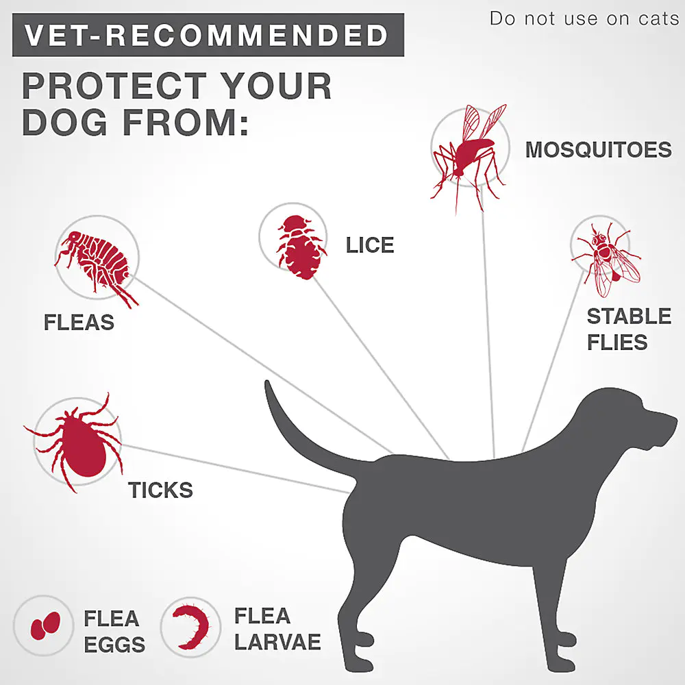 Dimensions: 4.25 in x 0.87 in x 4.72 inCautions: DO NOT administer by mouth. DO NOT use on dogs under 8 weeks of age. DO NOT use on cats, kittens or any other animal. Cats that actively groom or engage in close physical contact with recently treated dogs may be at risk of serious harm, including death (See PRECAUTIONS). Consult a veterinarian before using on sick, aged, pregnant or nursing animals or animals under drug or other pesticide treatment.