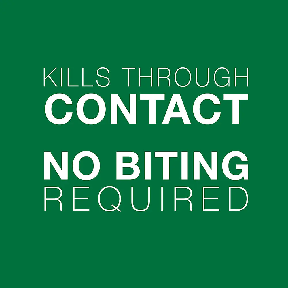 - Kills ticks, fleas through contact - no biting required. Kills lice and mosquitoes too